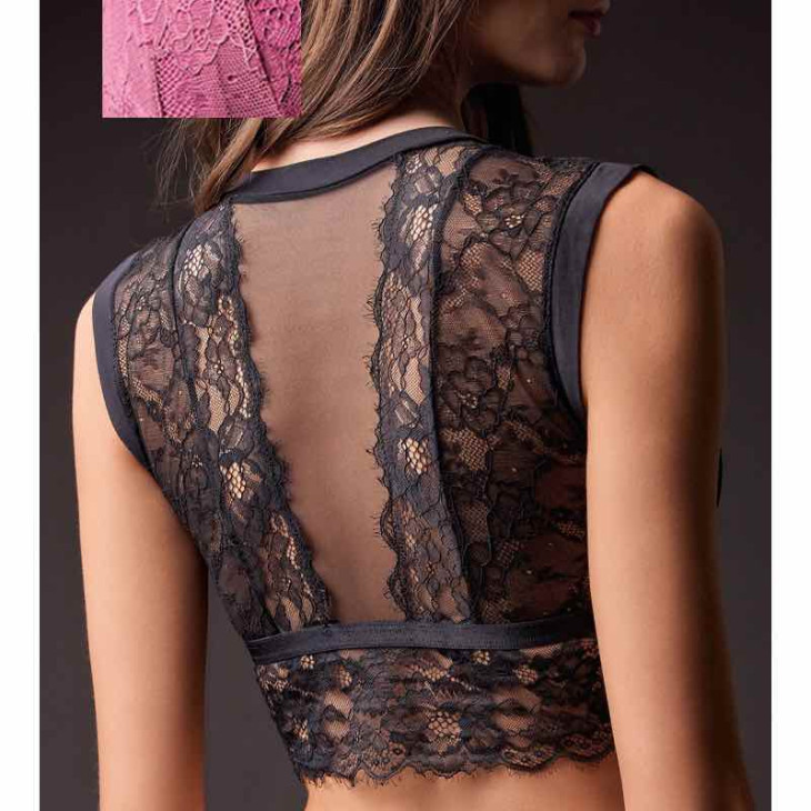 Top Lormar Party novinka značky Lormar zima 2025, bez kostíc a bez push up efektu. Top Lormar Party je vyrobený v kombinácii jemnej čipky a transparentného tylu. Možnosť nosiť samostatne alebo pod sako či sveter ako štýlový doplnok outfitu.